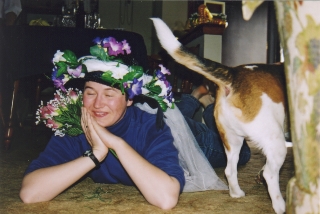 My sister Lynn came up with an amazing bonnet, which is a shame because most of its charms do not show up on film.